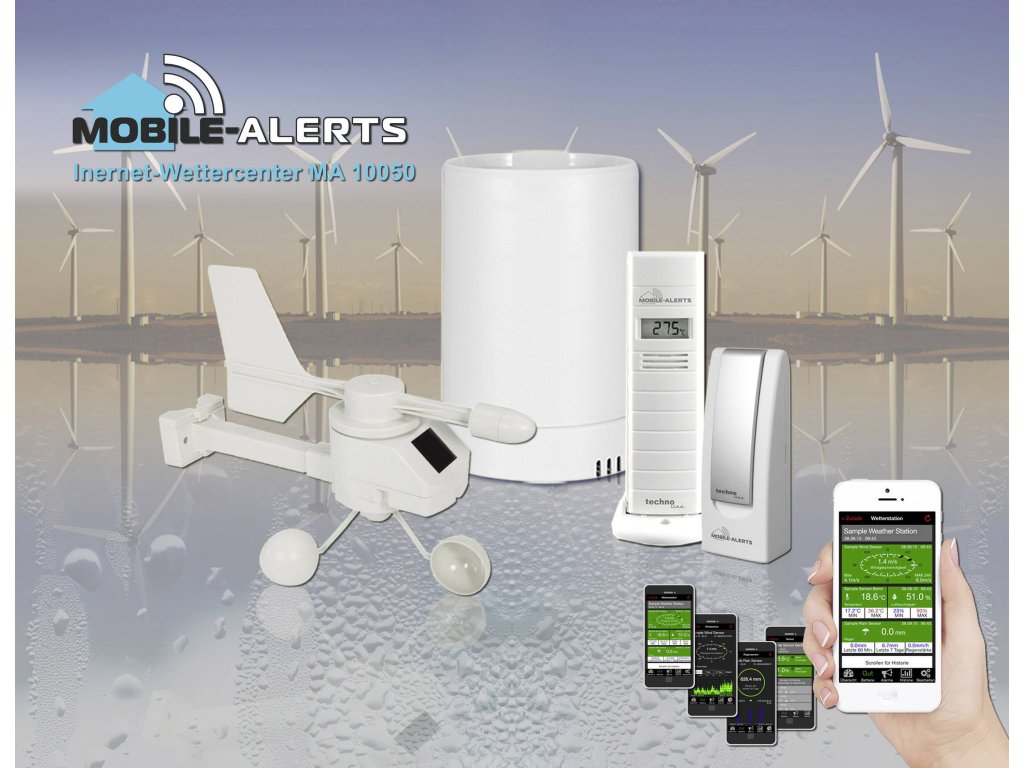 Sada MOBILE ALERTS MA 10050 s Gateway (MA 10000) a vysílačem (MA 10200) trvale kontroluje teplotu a hlásí poruchy. MA 10660 je další senzor v rámci sady pro hlídání domu Mobile Alerts. Tento senzor umožňuje monitorování rychlosti a směru větru a větrných poryvů. U tohoto senzoru odpadá nutnost výměny baterií, protože MA 10660 je vybaven solárními panely.