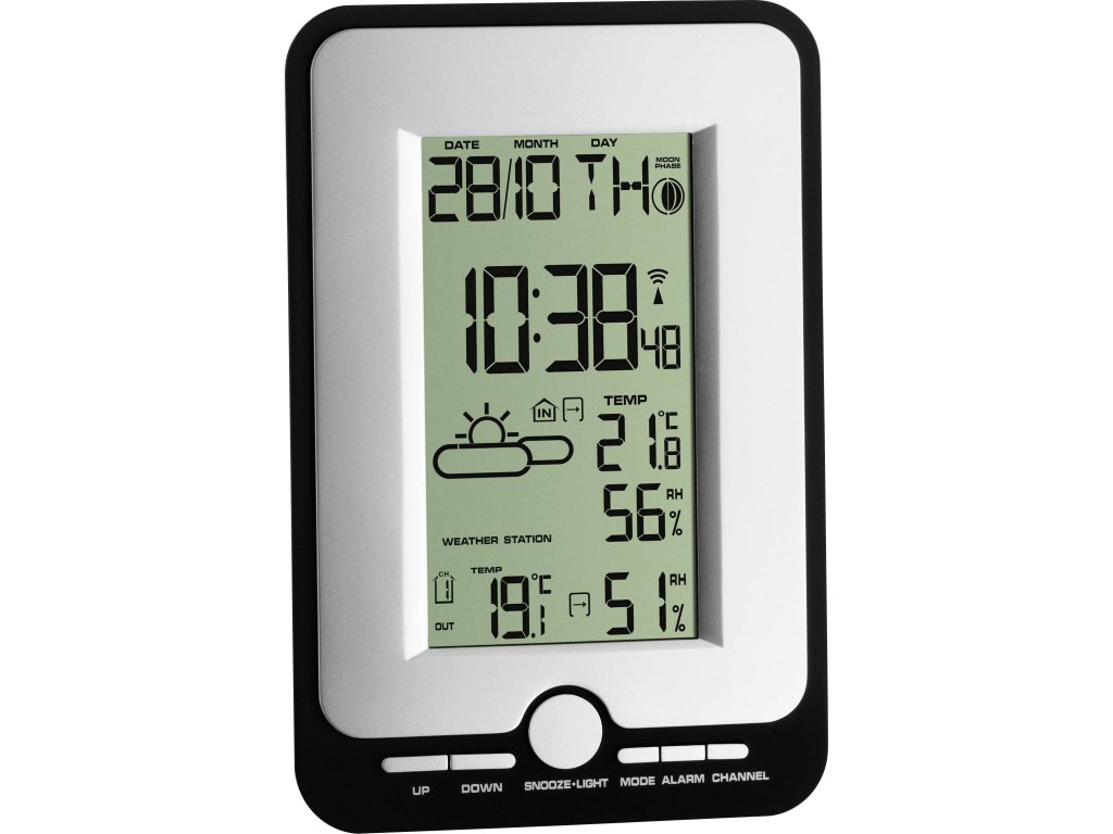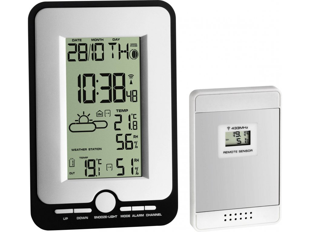 | Funkce (meteostanice): | venkovní vlhkost vzduchu · venkovní teplota · datum · den v týdnu · vnitřní vlhkost vzduchu · vnitřní teplota · max./min. hodnota · měsíční fáze · hodiny řízené rádiovým signálem (např. DCF77) · max. 3 čidla |