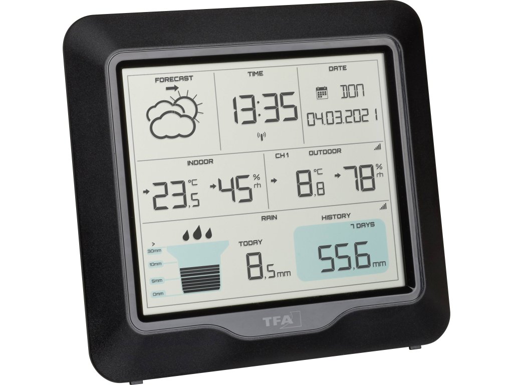 | Funkce (meteostanice): | venkovní teplota · venkovní vlhkost vzduchu · datum · hodiny řízené rádiovým signálem (např. DCF77) · vnitřní vlhkost vzduchu · vnitřní teplota · max./min. hodnota · srážkoměr · den v týdnu |