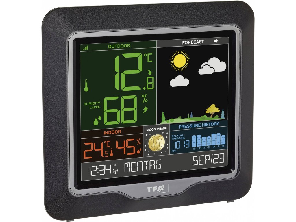 | Funkce (meteostanice): | venkovní teplota · venkovní vlhkost vzduchu · vnitřní teplota · vnitřní vlhkost vzduchu · měsíční fáze · hodiny řízené rádiovým signálem (např. DCF77) · tlak vzduchu · max. 1 čidlo · datum · den v týdnu · barevný displej |