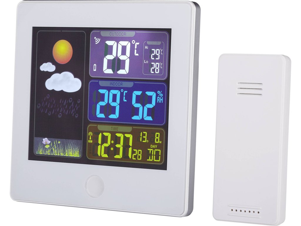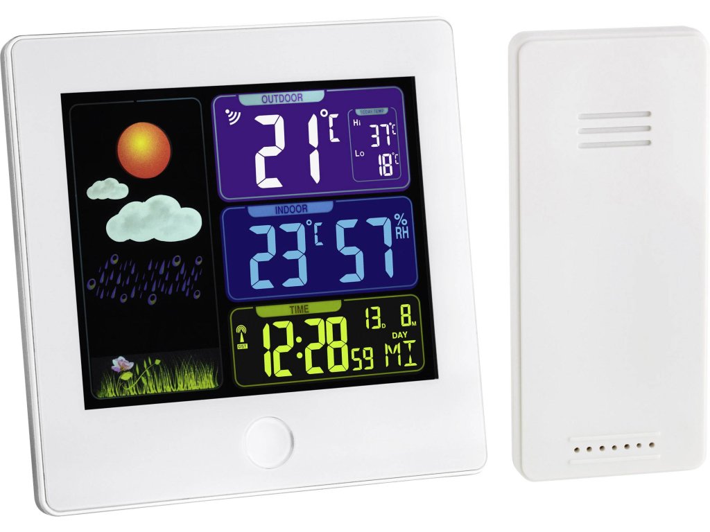 Funkce (meteostanice): | venkovní teplota · barevný displej · hodiny řízené rádiovým signálem (např. DCF77) · vnitřní vlhkost vzduchu · vnitřní teplota · max./min. hodnota · datum · den v týdnu · max. 1 čidlo |