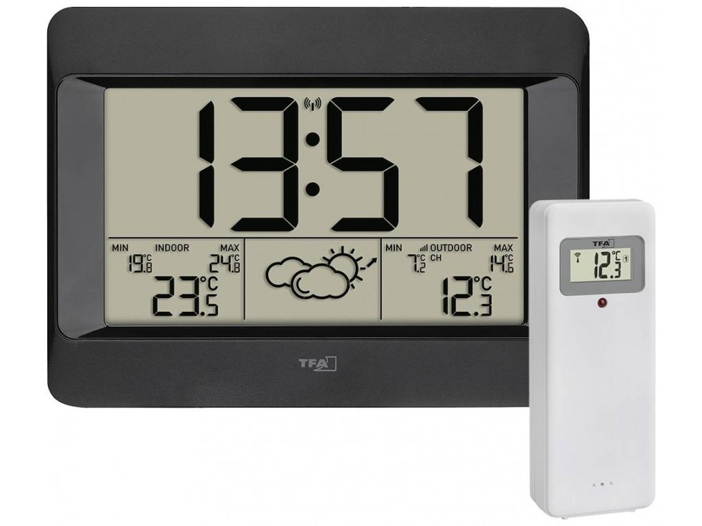 Funkce (meteostanice): | venkovní teplota · hodiny řízené rádiovým signálem (např. DCF77) · nastavitelné časové pásmo · vnitřní teplota · max. 3 čidla · max./min. hodnota · předpověď počasí |