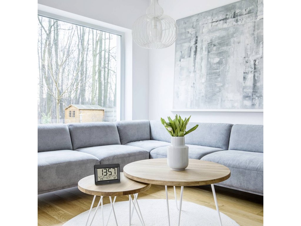 Nejvyšší a nejnižší hodnotyPředpověď počasí se symboly a tendence tlaku vzduchuAlarm a opakované buzeníK postavení nebo zavěšení na stěnuLze rozšířit až na 3 teplotní vysílače, také pro kontrolu teploty vzdálených místností, např. dětských pokojů, vinných sklepů nebo skleníků