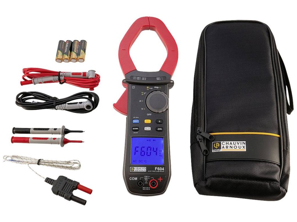Klešťový multimetr F604·Brašna·1x sada měřicích kabelů·1 sada zkušebních hrotů·1 termočlánek typu k·4 x baterie 1,5 V.