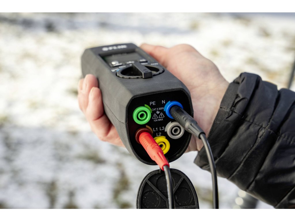 Kontrola spojení ochranného vodiče (PE) a integrity elektrického vedení.Testuje zařízení pro ochranu proti poruchovému proudu (RCD).