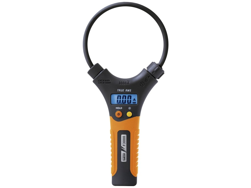 Praktické proudové kleště s integrovaným displejem pro zobrazení naměřené hodnoty byl vyvinut pro měření AC proudu do 3000 A v měřicí kategorii CAT IV 600V (odpovídá IEC/EN61010-1). Vedle dobře čitelného displeje s rozližením 3000 bodů je F3000 opatřen také funkcí automatického vypnutí pro úsporu baterie. F3000 poskytuje vysokou flexibilitu při měření v úzkých, těžko přístupných místech problematických měřicích místech, při měření vodičů s větším průřezem a je vhodný také pro měření více vodičů najednou. Přístroj lze snadno ovládat i v rukavicích.Vlastnosti: