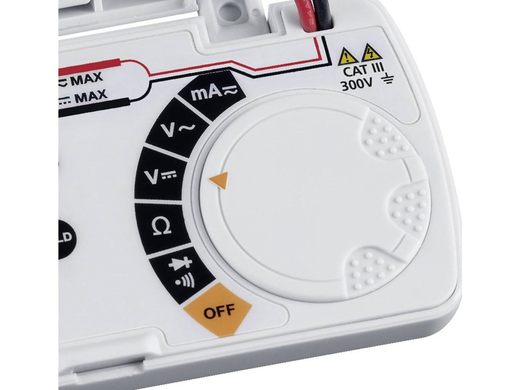 Univerzální multimetr umožňuje rychlé a přesné měření napětí, proudu a odporu. Pomocí testu diod je možné provádět měření funkčnosti a polarity. Automatická zkoušečka průchodnosti upozorní uživatele akustickým signálem. Přepínání funkcí a rozsahu nevyžaduje žádné přepojování kabelů. Pomocí funkce Hold lze na displeji zobrazit aktuální naměřenou hodnotu, ideální pro ideal špatně přístupná místa. Pouzdro je z velké části vyrobeno z recyklovaného plastu a představuje cenný přínos pro udržitelnost.Tento text byl přeložen strojově.