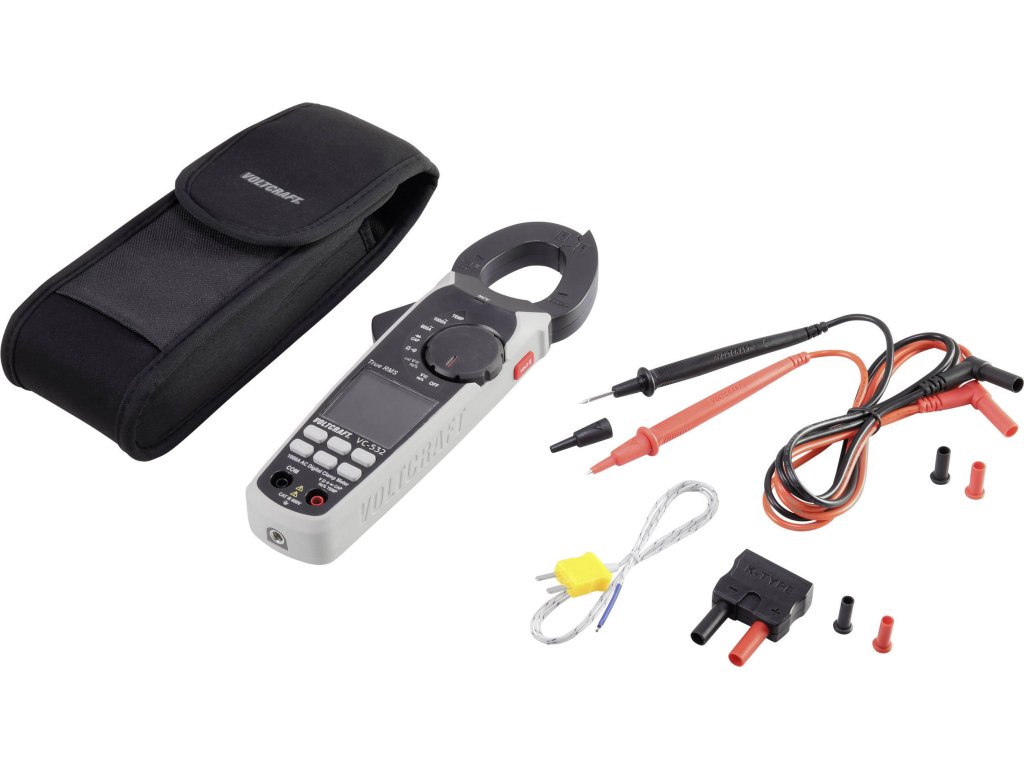 Proudové kleště VC-532·Bezpečnostní měřicí kabely·Termočlánek typu K, vzduchové čidlo (-20 až +230°C)·Měřicí adaptér typu K·Pouzdro pro skladování·3x baterie AAA (1,5 V)