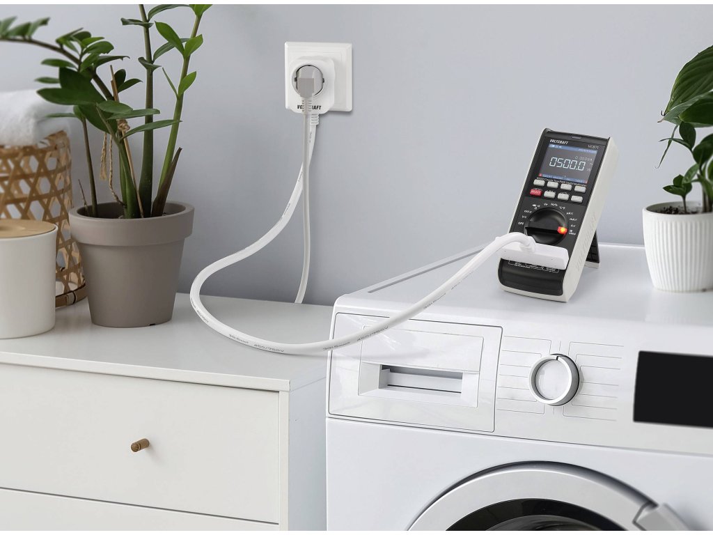 Přímé měření výkonu a úhlu fázového posuvu ve zvláštní poloze voliče a s pomocí přiloženého měřicího adaptéru pro zásuvky s ochranným kontaktem. Zobrazuje činný výkon, zdánlivý výkon, napětí, proud, účiník a frekvenci.
