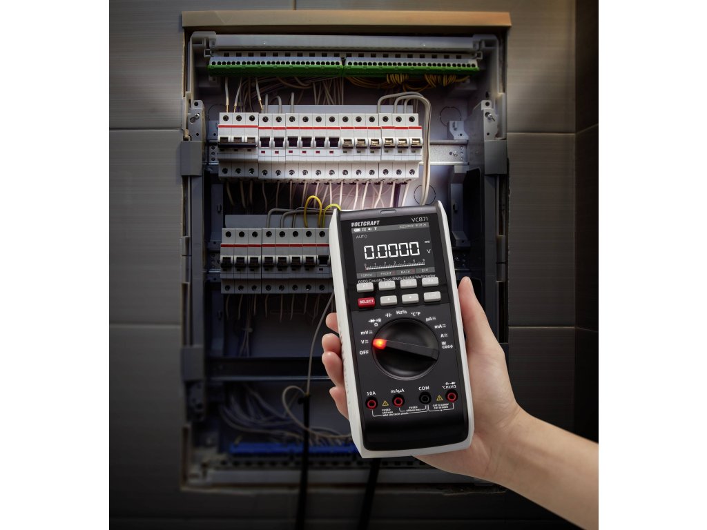 VC 871 z referenční řady VC-800 nabízí působivé funkce a exkluzívní měřicí adaptér pro zásuvky s ochranným kontaktem. Pro měření činného výkonu, zdánlivého výkonu, fázového posuvu, napětí, proudu a frekvence zásuvek a připojených spotřebičů.TFT displej. Ostrý. Osobitý. Senzační.