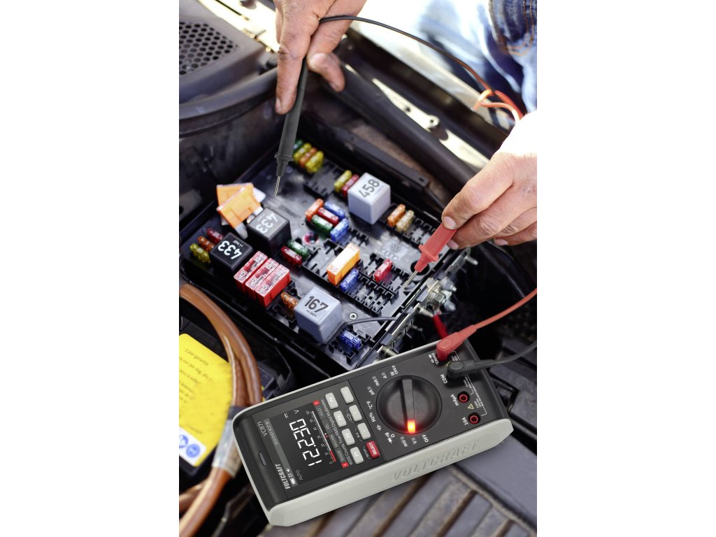 Dvouvrstvý a dvoubarevný silikonový obal s ukazatelem opotřebení tvoří část velké nflexibility přístroje. Mimořádně flexibilní konstrukce lícen, která je pro mechanické zesílení spletena vysoce ohebnými a proti roztžení odolnými plastovými vlákny neuvěřitelně zvyšuje celkovou flexibilitu, VOLTCRAFT nyní poprvé přináší tuto technologii do mulltimetrů.