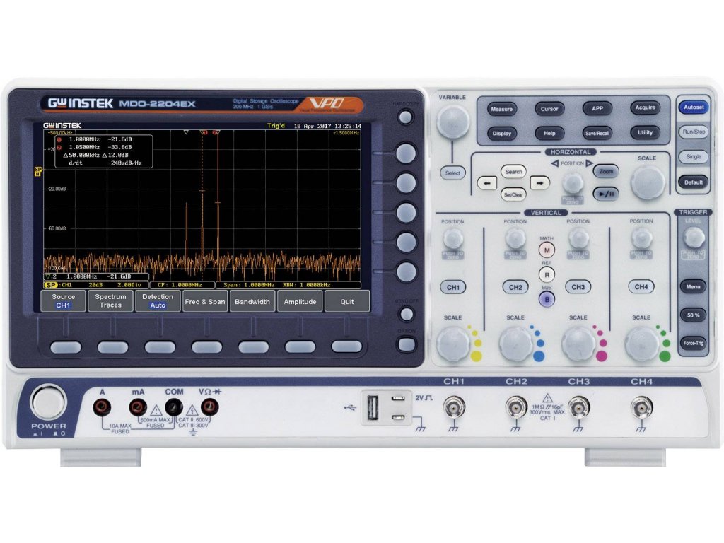 GW Instek MDO-2204EX digitální osciloskop 200 MHz 1 GSa/s 10 Mpts 8 Bit s pamětí (DSO), spektrální analyzátor, funkce multimetru