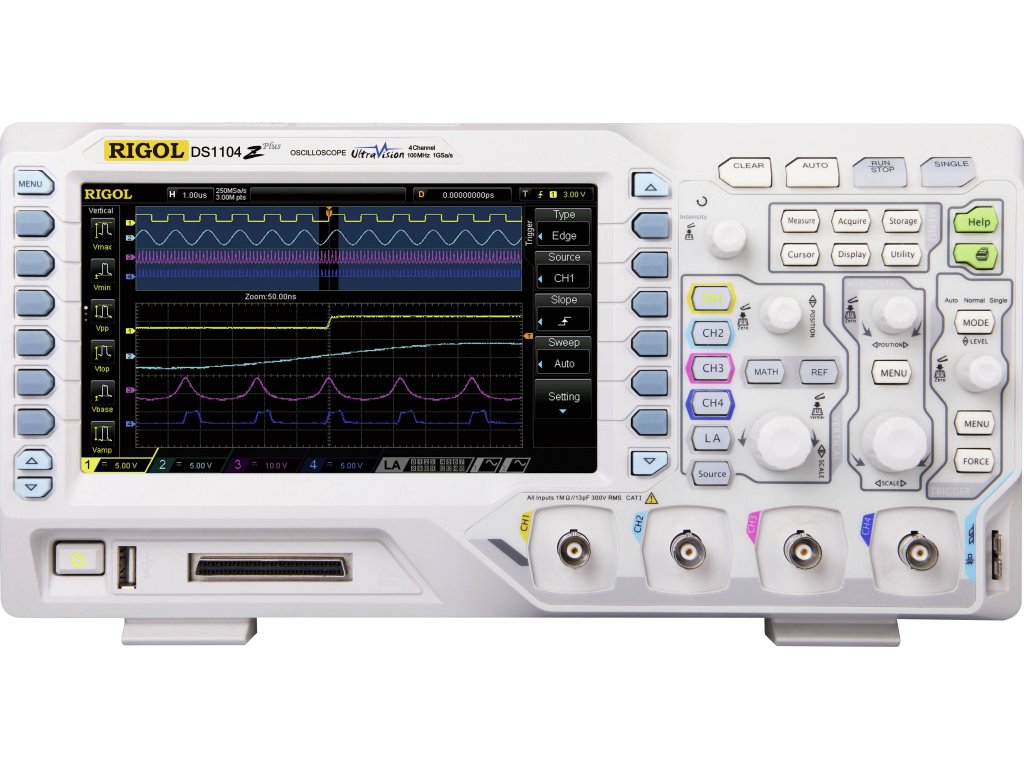 Rigol DS1074Z-S Plus digitální osciloskop 70 MHz, 4kanálový, 1 GSa/s, 24 Mpts, 8 Bit, s pamětí (DSO), generátor funkcí, 1 ks, DS1074Z-S Plus