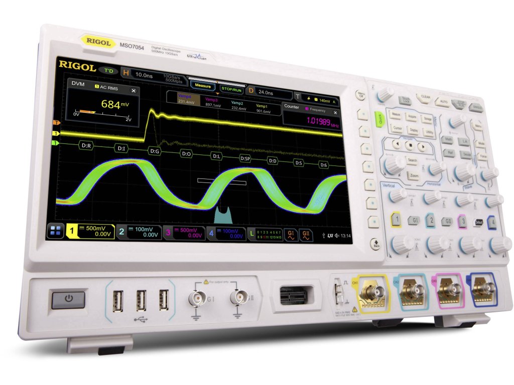 Model DS7014 je 100MHz 4kanálový digitální osciloskop se vzorkovací rychlostí 10 GSa/s na kanál a s vynikajícími vlastnostmi, jako je například velká hloubka paměti až 500 Mpts. Kromě toho model disponuje integrovaným spouštěním sériové sběrnice a velkým dotykovým barevným displejem s úhlopříčkou o velikosti 10,1 " pro optimální zobrazení měřených signálů. Standardem je ovládání přes LAN, USB a RS232 stejně jako mnoho matematických funkcí.Model DS7014 je navíc vybaven mnoha praktickými funkcemi a má několik zajímavých vlastností. Kromě toho jsou k dispozici šířky pásma a rozšíření paměti pomocí aktualizace softwaru. Integrována je funkce DVM a frekvenční čítač.