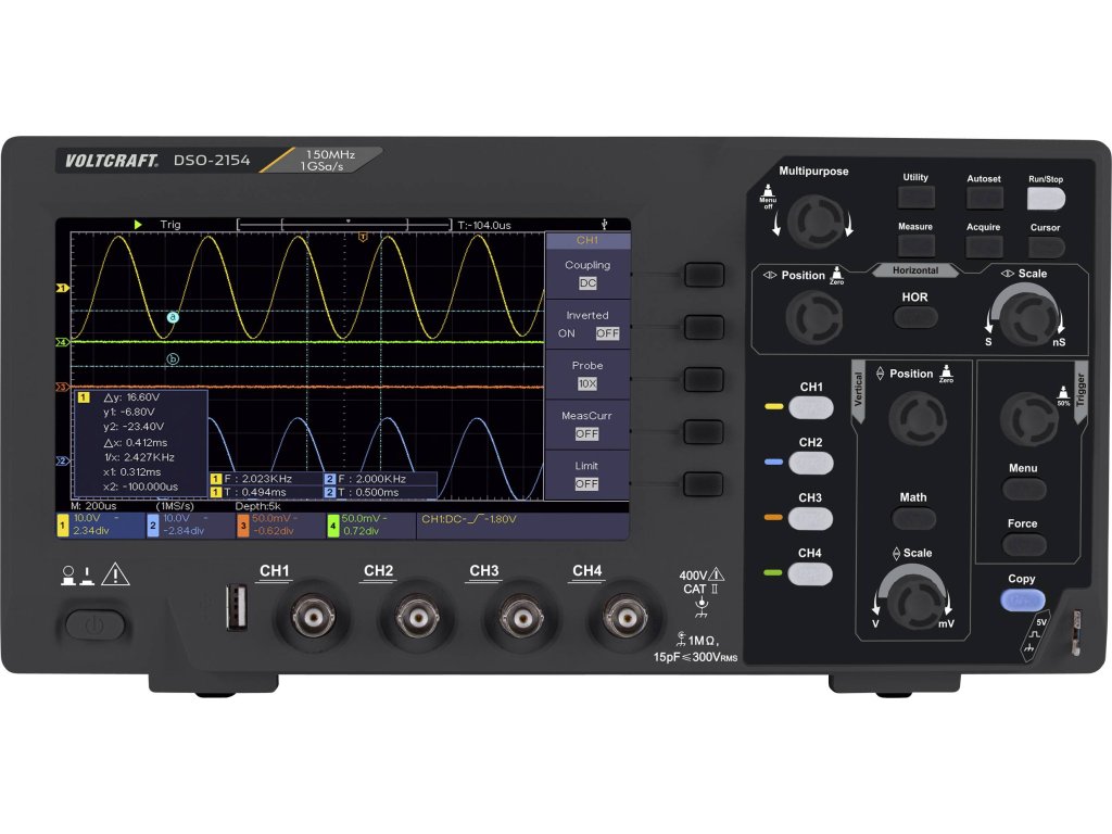 VOLTCRAFT DSO-2154 digitální osciloskop 150 MHz, 4kanálový, 1 GSa/s, 80 kpts, 8 Bit, s pamětí (DSO), 1 ks, VC-11954580