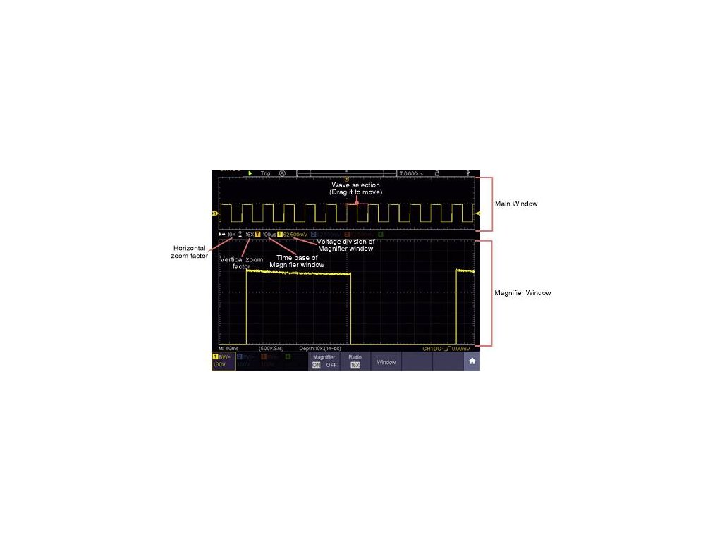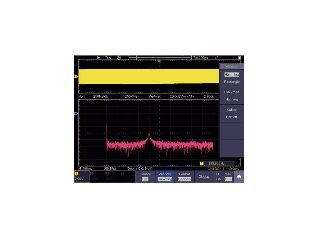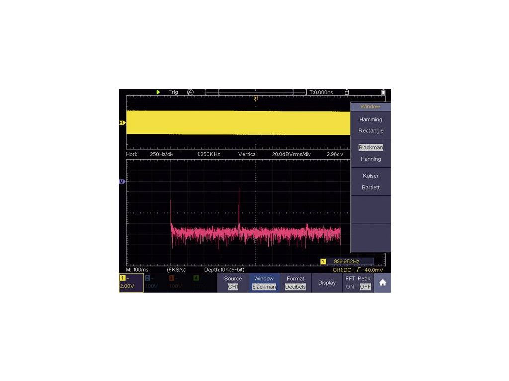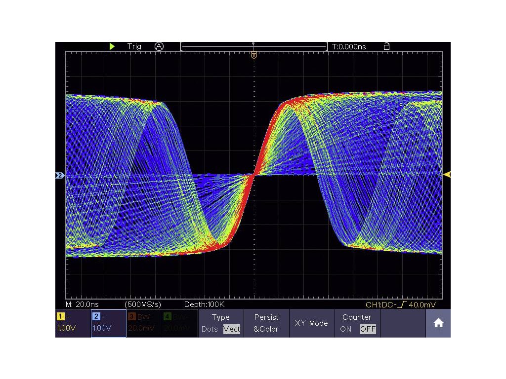 Šířka pásma: 100MHzMaximální vzorkovací frekvence 1 GS/s.Vertikální rozlišení: Max. 14 bitůDélka záznamu: 40 minutRychlost aktualizace křivky: 45.000 wfms/s.Horizontální stupnice: 2ns/díl - 1000 s/díl, v krocích po 1-2-5Doba náběhu