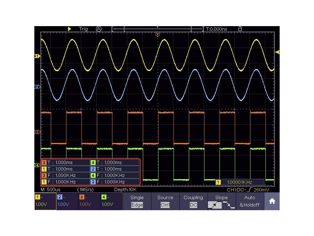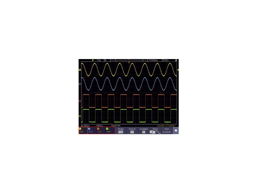 Šířka pásma 100 MHz, 4 kanálůVzorkovací frekvence 1 GS/s.Záznam po dobu 40 minut8" (20,32 cm) LCD dotyková obrazovka rozlišení: 800 x 600 pixelů14 bit. Vertikální rozlišení ADCPodporuje dekódování SPI, I2C a RS232 / CANObnovovací frekvence obrazu 45000 w/s