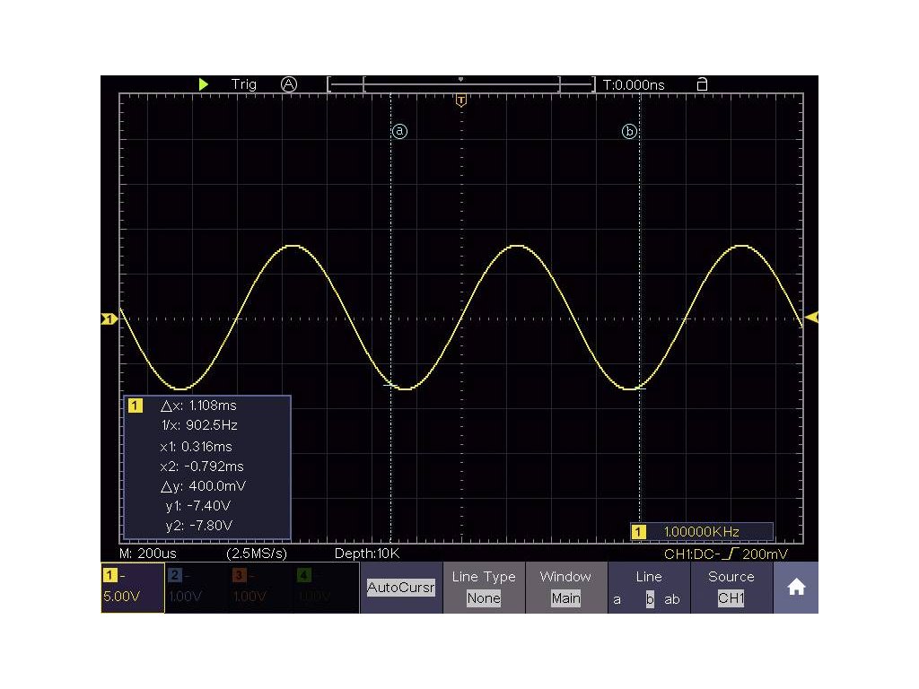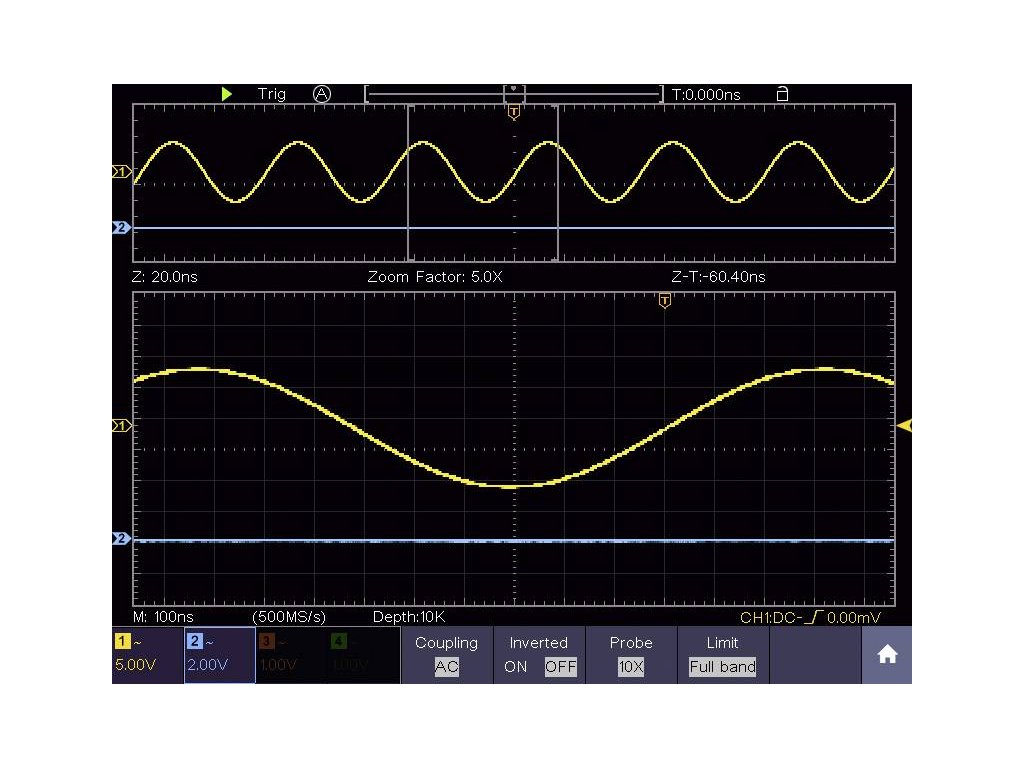 Rozsah časové základny: | 2 ns/dílek až 1000 s/dílek |