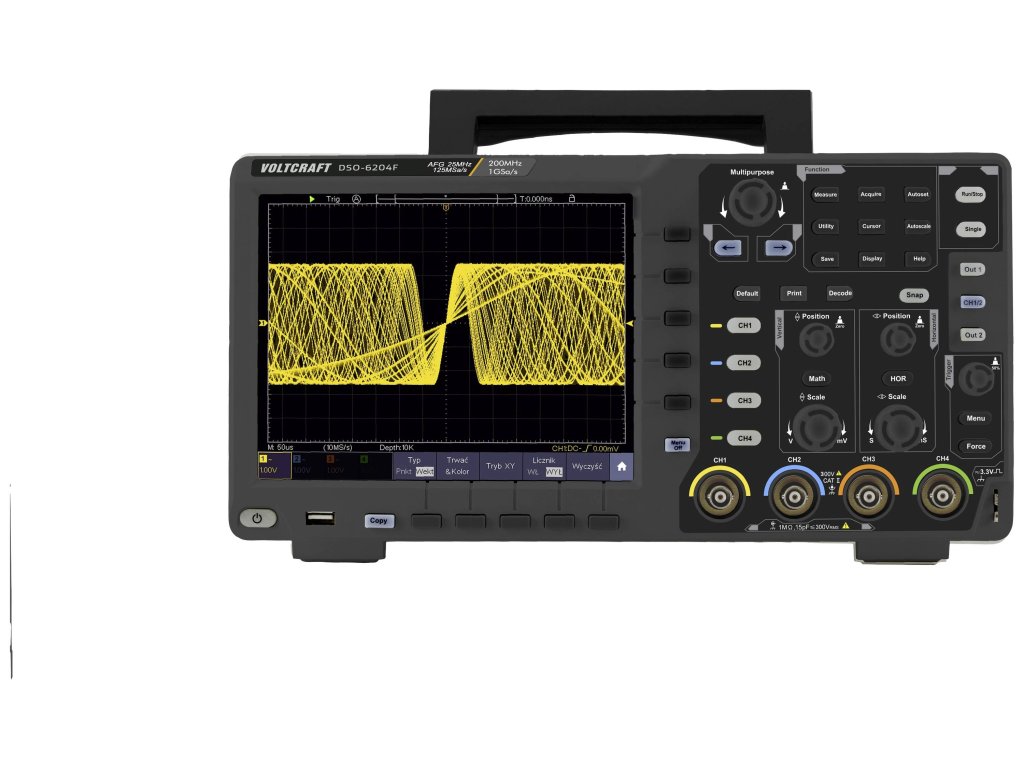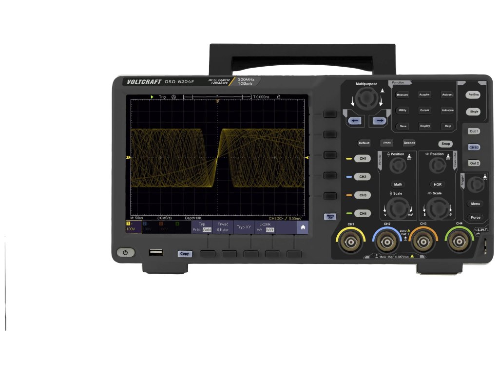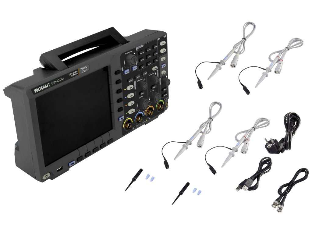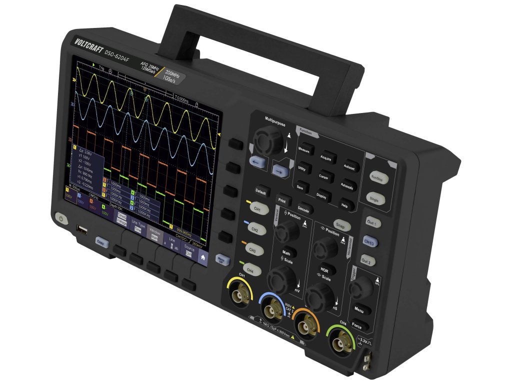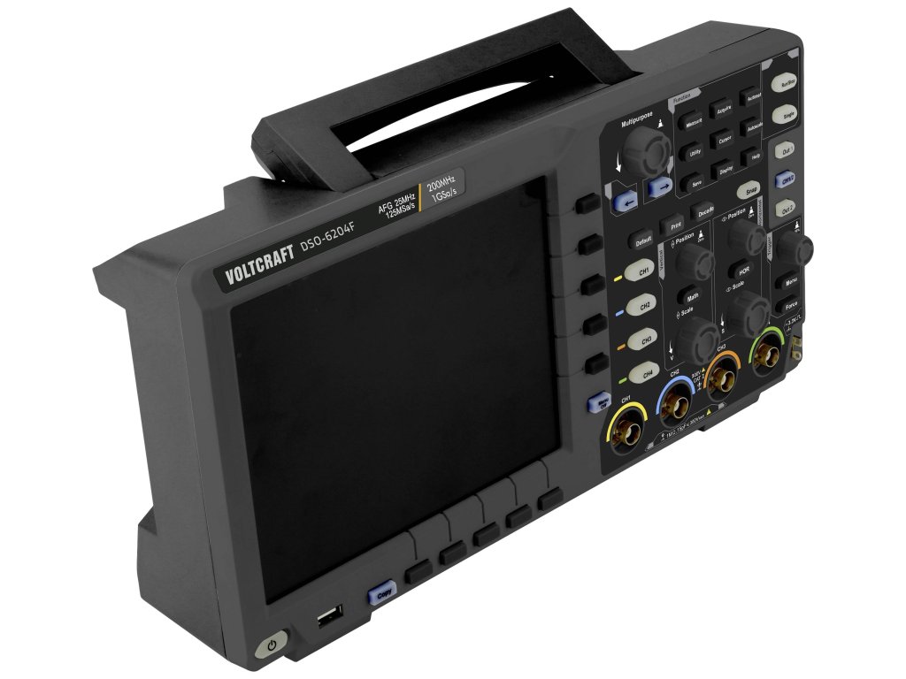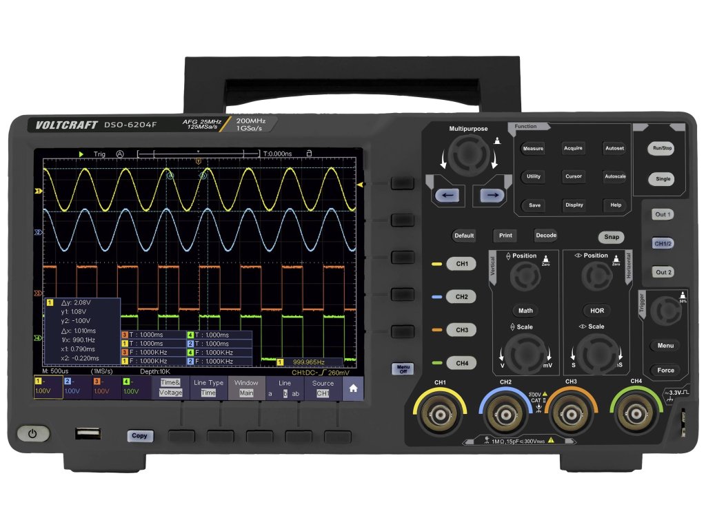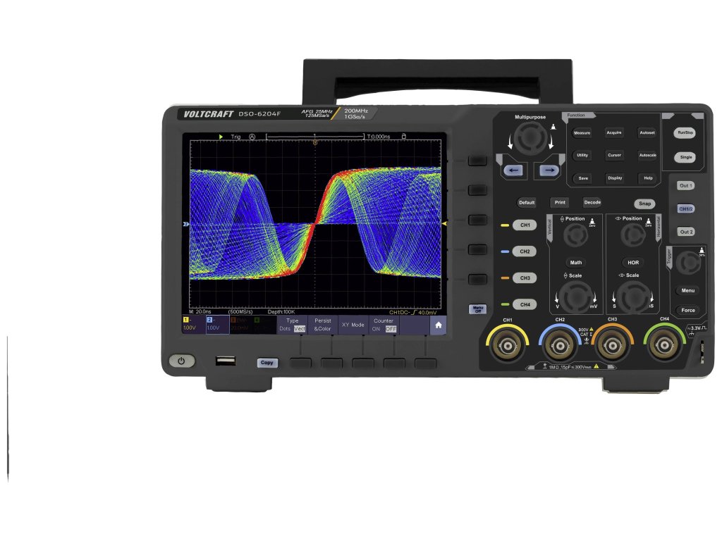 VOLTCRAFT DSO-6204F digitální osciloskop 200 MHz, 4kanálový, 1 GSa/s, 10 Mpts, 8 Bit, s pamětí (DSO), generátor funkcí, 1 ks, VC-8366330
