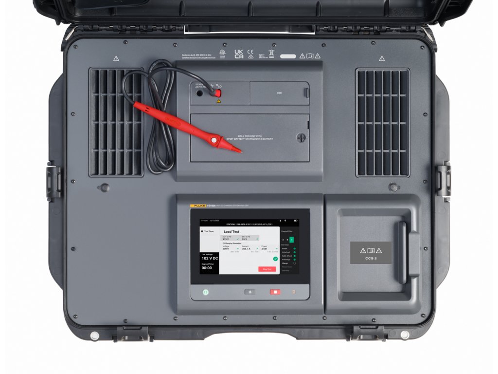 Fluke FEV500 je pokročilý analyzátor pro použití v terénu, který umožňuje efektivní testování rychlých nabíjecích DC stanic pro elektromobily; kombinuje totiž základní bezpečnostní testy a kontroly výkonu v jediném zařízení. Umožňuje snadné použití, zjednodušuje proces vyhodnocení bez nutnosti dalších testovacích a měřicích zařízení a zajišťuje plnou bezpečnost a funkčnost EVSE (Electric Vehicle Supply Equipment, zařízení pro nabíjení elektromobilů).