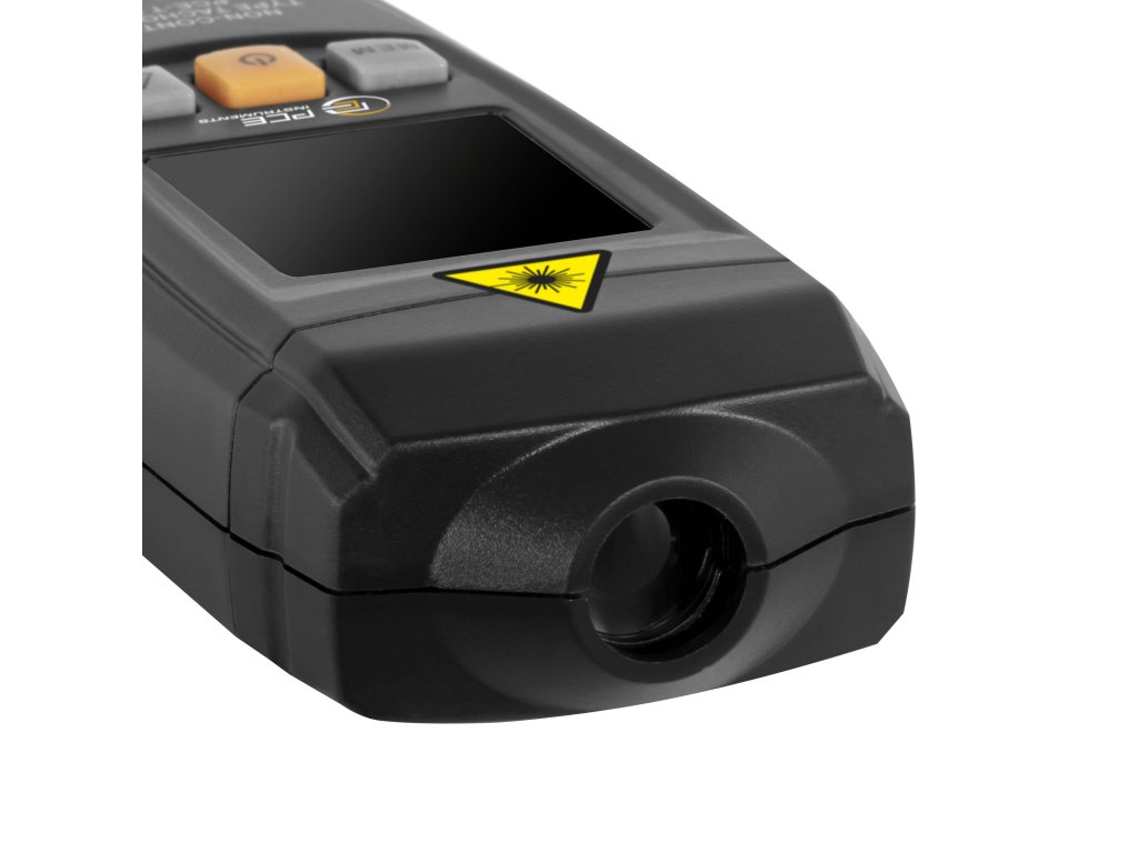 Náš bezkontaktní ruční tachometr je digitální, bateriově napájený optický měřicí přístroj, který lze díky optickému senzoru použít až do vzdálenosti 50 cm od měřeného bodu. Pokrývá rozsah měření od 2,5 do 99999 otáček za minutu (ot./min) a nabízí rozlišení 0,1 ot./min pro spolehlivé výsledky.Díky funkcím minimální, maximální, poslední a průměrné hodnoty umožňuje bezkontaktní ruční tachometr záznam aktuálních a extrémních naměřených hodnot během měření. LCD displej s úhlopříčkou 1,8" nabízí jasné zobrazení za všech podmínek. Díky kompaktnímu designu s rozměry 127 x 55 x 30 mm je přístroj skladný a snadno se ovládá. Laser umožňuje přesné měření ve vzdálenosti 50 až 500 mm. Pro měření je třeba stisknout tlačítko. Přitom se hodnoty aktualizují na sekundovém základě na náš bezkontaktní tachometr.