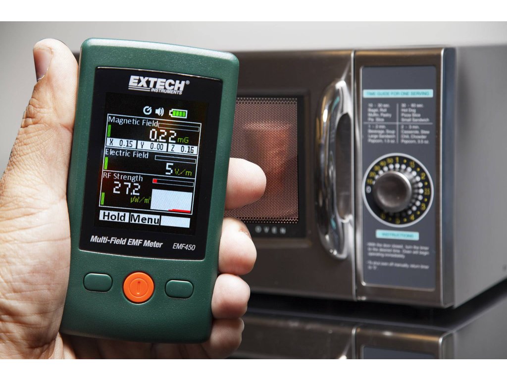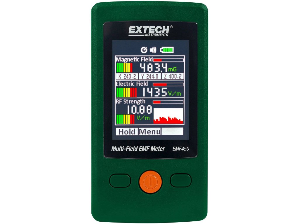 Měřicí přístroj EMF450 měří současně magnetické pole, elektrické pole a HF a zobrazuje je. Které měrná jednotka a druhy jsou jednotky elektrických a magnetických a hustota výkonu. To EMF450 je pro měření na elektrické vedení, elektrických přístrojů, průmyslových zařízení, mobilní telefony, základní stanice a úniků mikrovlnné trouby.EM450 je vybavena třemi individuální anténa senzory pro měření magnetického pole (EMK).