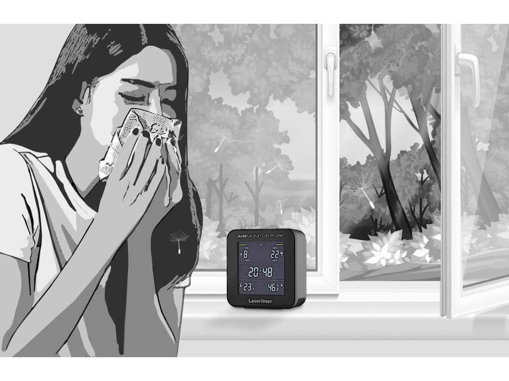 Tento přístroj na měření jemného prachu je vybaven přesným švýcarským senzorem typu Sensirion SPS30 a vyhodnocuje koncentraci jemného prachu podle oficiálních pokynů Spolkového úřadu pro životní prostředí v kategoriích PM 2.5 a PM 10. Patří mezi nejnebezpečnější látky znečišťující ovzduší. Částice jemného prachu o průměru až 10 mikrometrů jsou mimo jiné pylem a alergenem rostlin a květin. Částice jemného prachu o průměru až 2,5 mikrometrů jsou např. průmyslové plyny, které kvůli své malé velikosti proniknou obzvlášť hluboko do dýchacích cest a způsobují trvalé poškození plic. AIRmonitor PURE varuje pomocí barevného a číselného displeje a vypínatelného akustického signálu před zdravými koncentracemi jemného prachu. Kromě toho zobrazuje přístroj trvale čas, teplotu a vlhkost vzduchu.Tento text byl přeložen strojově.