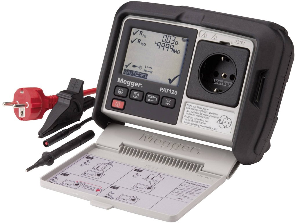 Pomocí tohoto testeru přístrojů můžete rychle a pohodlně provádět na síti nezávislé zkoušky podle DIN VDE 0701-0702 (DGUV, 3, BGV A3). S tímto testerem spotřebičů napájeným z baterií můžete provádět základní zkoušky, jako je odpor ochranného vodiče, izolační odpor a svodový proud, i bez síťového napětí. Předdefinované zkušební procesy usnadňují zkoušejícím výběr průběhu zkoušek, což umožňuje rychlé připojení testovacích vzorků podle SK I nebo SK II. K dispozici je také zkušební postup pro prodlužovací kabely a navíječe kabelů, díky čemuž je lze v praxi velmi často vyskytující se testované kabely velmi rychle a snadno zkontrolovat. Tester přístrojů PAT120 lze provozovat jak na baterie, tak i s akumulátory.Tento text byl přeložen strojově.
