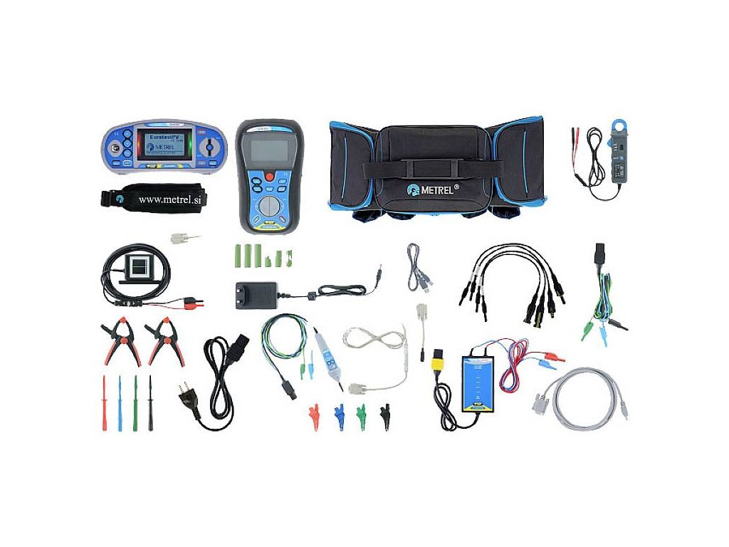 Zkušební přístroj mi 3108 EurotestPVVzdálená jednotka EurotestPV + adaptérZkušební hrot CommanderBrašnaTestovací kabel s Schuko zástrčkou, 1 m.Testovací kabel 3 x 1,5 mMěřicí hroty, 4 ks (červený, zelený, modrý, černý)Krokosvorky, 4 ks (červená, zelená, modrá, černá)Upevňovací kleště, 2 ksPV bezpečnostní sondaAdaptér PV MC3/4 (samec / samice)Proudové kleště AC/DCPV Referencezelle + adaptérTeplotní sonda + adaptérSíťový adaptér + 6 NiMH akumulátorů, typ AAUSB a RS232 - PS/2 kabelPočítačový software EuroLink proSada nosných ragerů, 2 ks2 kusyNávod k obsluze a příručka na CD2 kusy osvědčení o kalibraci