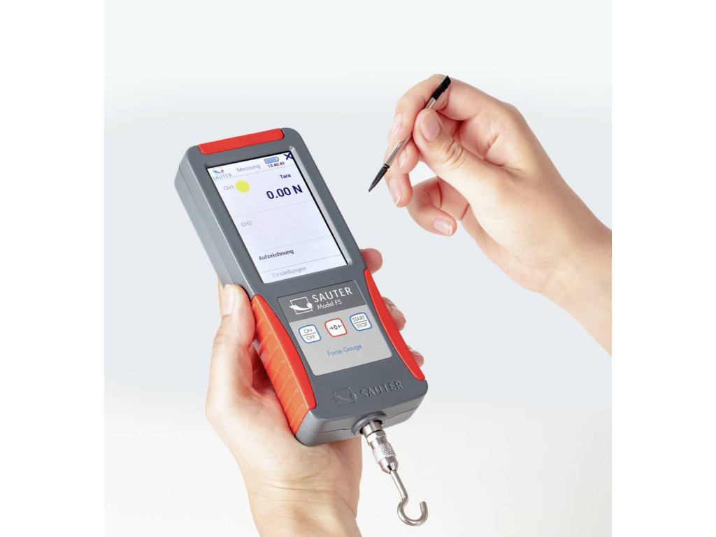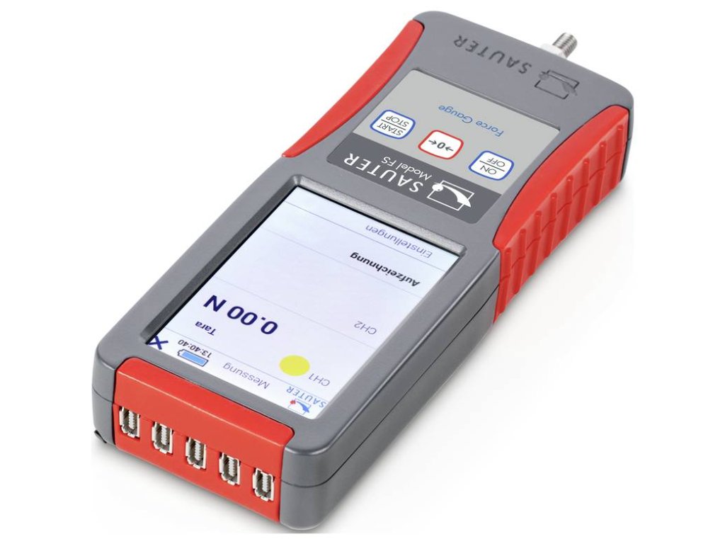 Použití s integrovaným měřicím článkemTento měřič síly Premium Sauter FS má integrovaný měřicí článek pro použití ve vlaku a při tisku. Díky multifunkčnímu displeji lze snadno sledovat všechny naměřené hodnoty v reálném čase, a to bez ohledu na to, zda je mobilní pro rychlé testování nebo stacionární. Přes integrované rozhraní lze data odeslat do počítače nebo notebooku k dalšímu zpracování; použití s externími měřicími články