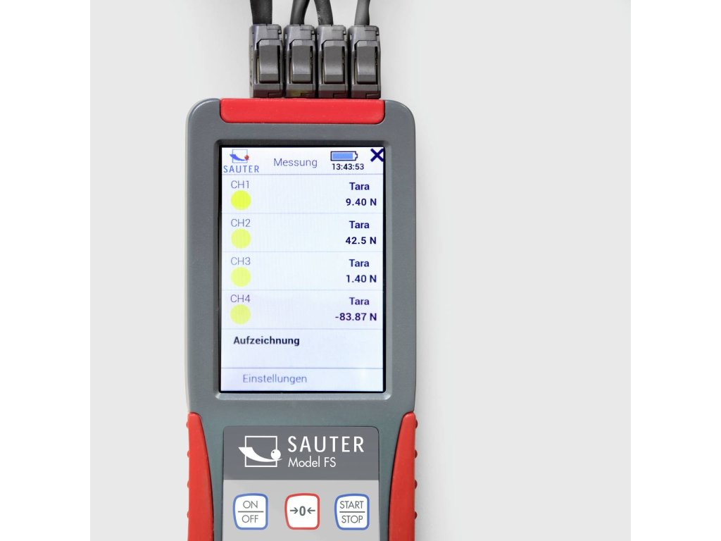 Siloměr Premium Sauter FS je kompatibilní se všemi tenzometry Sauter Dehtenschmeter, viz měřicí články. Lze připojit až 4 externí měřicí články současně. Při použití všech dostupných externích měřicích kanálů se vnitřní měřicí článek deaktivuje po dobu připojení externího měřicího článku; lze měřit síly v různých směrech pohybu nebo tisku pouze jedním měřicím přístrojem; 3,5" dotykový displej; standardní provedení mi 4 měřicí kanály pro externí snímače síly; vnitřní měřicí článek je možný (je deaktivován, když je připojen externí měřicí článek); vhodný pro 4 vodiče a 6 vodiče s tenzometrem; dvoubodové nastavení se závaží nebo numerickým nastavováním; specifické údaje externího senzoru jsou uloženy přímo v zástrčce; USB rozhraní pro přenos dat a napájení sériově; interner paměť zařízení (16 GB) GB; nastavitelné si jednotky: kg, N, KN, MN, MN, Nm, kNm, mNm; funkce tolerance; funkce Track pro nepřetržité měření; měření špičkových hodnot; lze namontovat na všechny zkušební stanice SAUTER; dodáváno v kvalitním a odolném systémovém kufru (systainer® T-LOC) včetně síťového adaptéru a USB kabelu typ C; tip: objednejte praktický systémový kufřík (systainer® T-LOC) pro skladování a přepravu příslušenství, svorek, senzorů, příslušenství a příslušenství Sauter TFS; viz TZS;