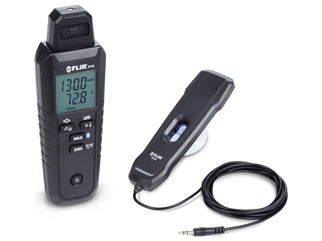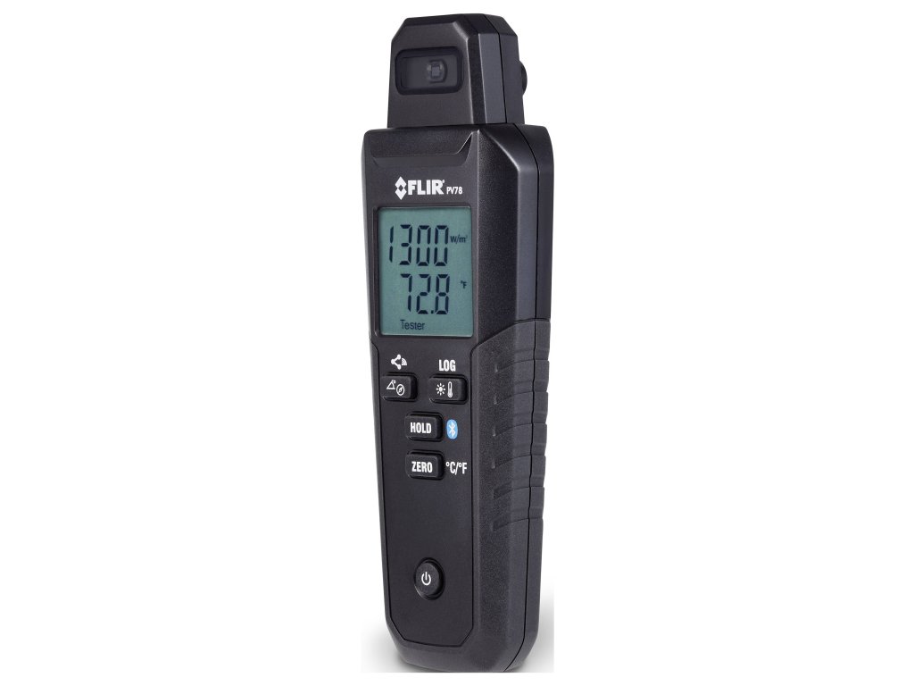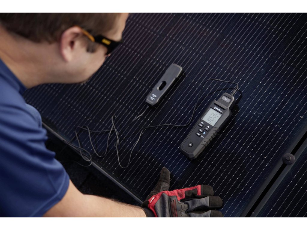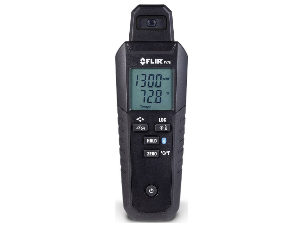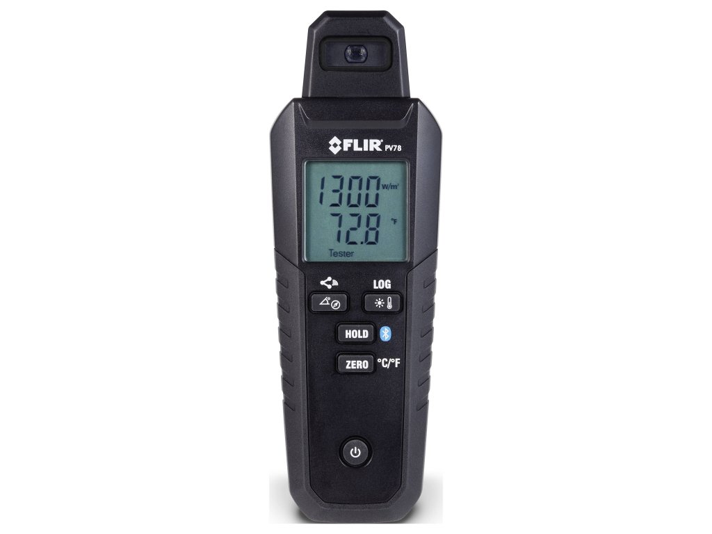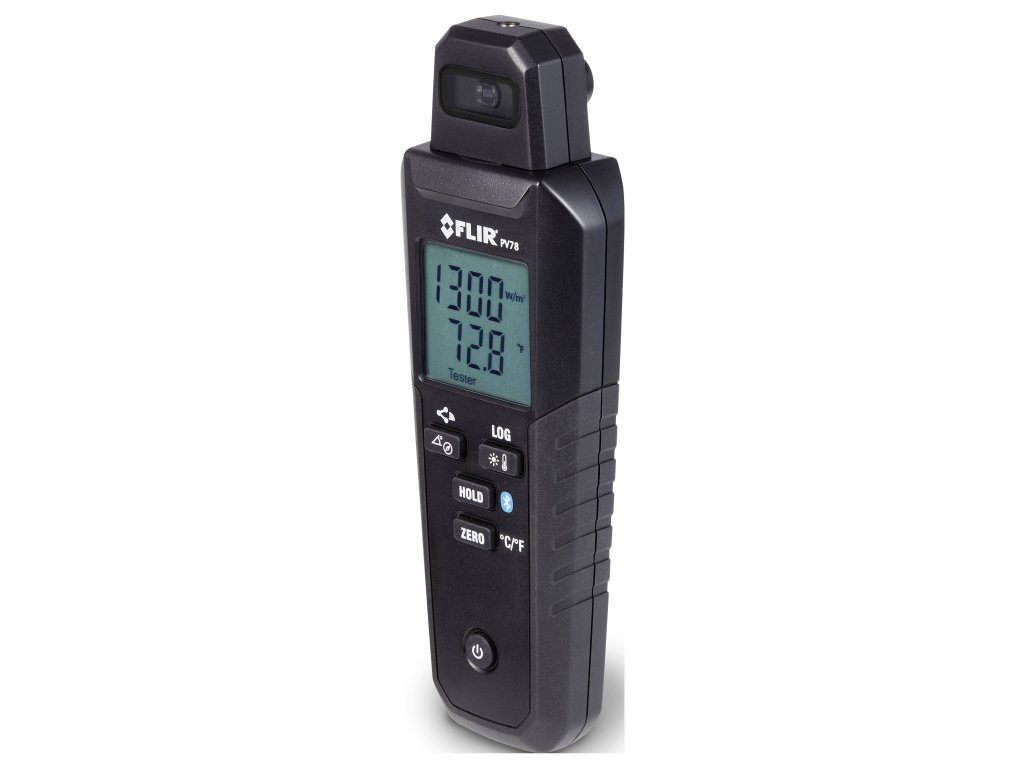 Proveďte okamžité měření intenzity slunečního záření (0 až 1400 W/m²) podle normy IEC 62446-1Kontrastní, velký LCD umožňuje odečítání i při jasném slunečním světle