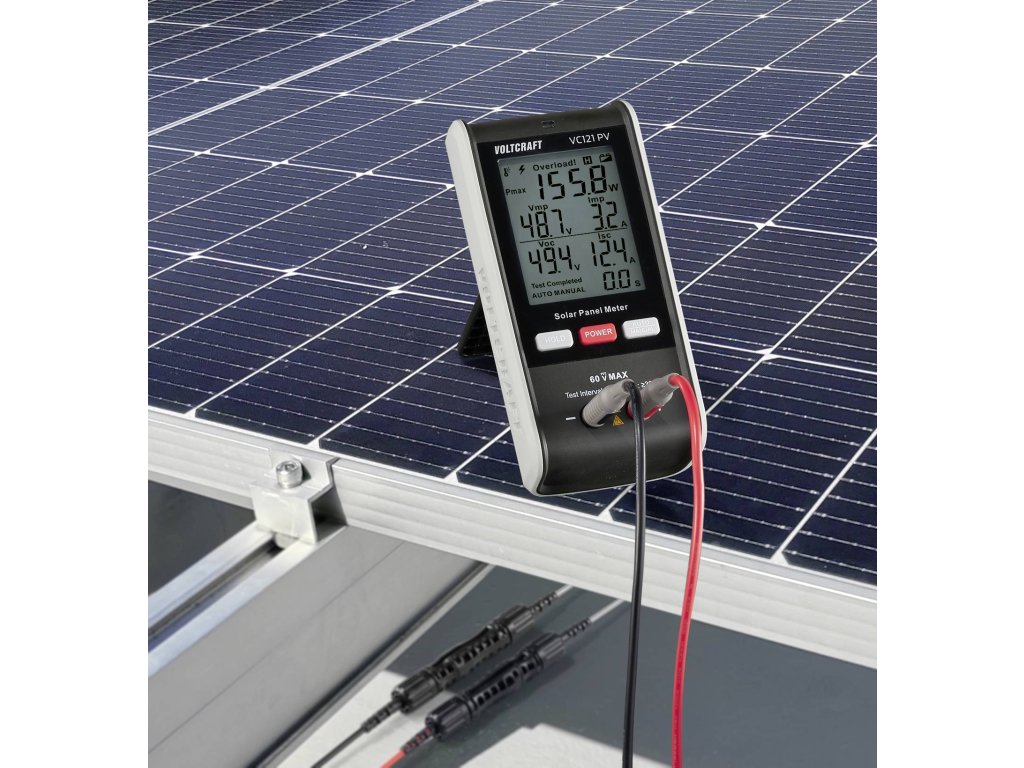 Pracuje solární systém naprosto bezchybně? Osvícený solární panel VOLTCRAFT VC121 PV zajišťuje svým testováním maximálního výkonu (až 800 W), špičkového napětí, špičkového proudu, napětí naprázdno a zkratového proudu. Měřič vás bude varovat i před přetížením a přehřátím. Všechny naměřené hodnoty lze zjistit manuálně i automaticky.
