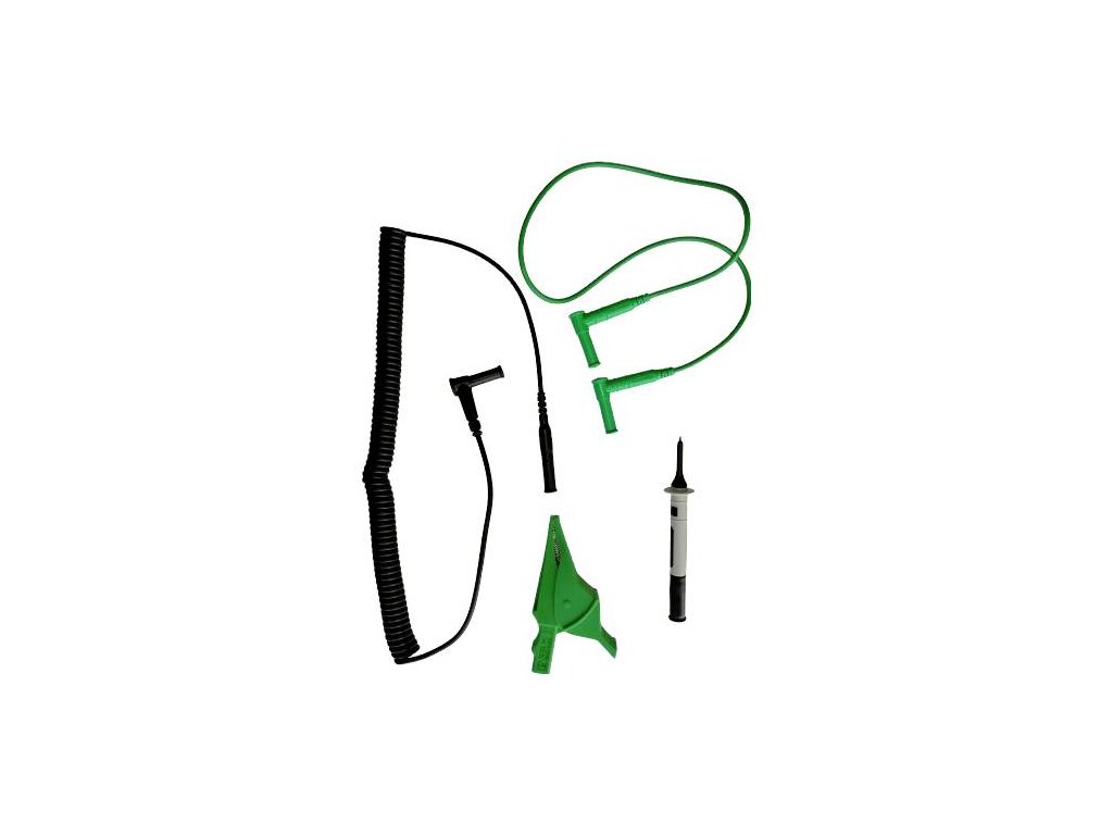 1 černý spirálový kabel (PVC)·1 zelená krokosvorka·1 černé zkušební hrot·1 zelená měřicí vedení (PVC - 0,50 m)