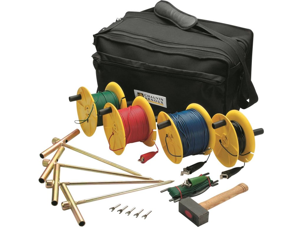 Chauvin Arnoux nabízí rozsáhlé spektrum měřicích přístrojů pro měření zemního odporu a zemního odporu obsáhlé a velmi kvalitní měřicí příslušenství.Příslušenství pro měření uzemnění je díky barevnému označení vedení a připojovacích svorek snadno připojitelné. Délka kabelu se prakticky orientuje na různé druhy použití sady příslušenství.