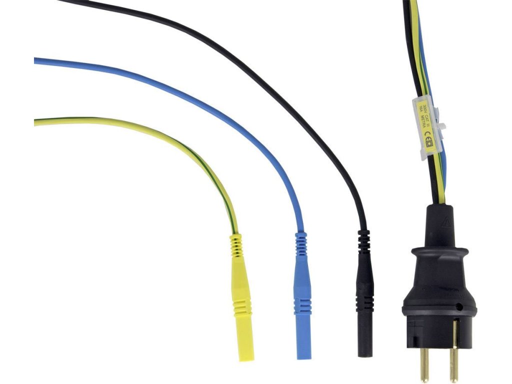 Jednofázový měřicí adaptér pro PROFITEST INTRO, zástrčka s ochranným kontaktem na bezpečnostní zástrčku 3 x 4 mm (černý, modrý, žluto-zelený vodič), 230 V AC, nárazuvzdorný, měřicí kategorie CAT III / 300 V, 16 ASpecifikace: