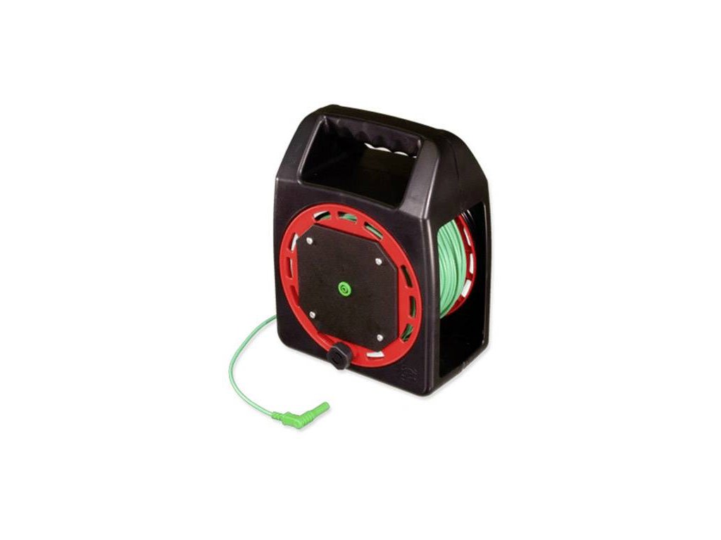 Prodlužovací kabel 50 m, zelené, na praktický kabelový buben, silikonový kabel s dvojitou izolací, ideální pro měření izolace, a pro měření ochranného vodiče a vyrovnání potenciálu, zatížení max. 20 A, připojení: Ø 4 mm bezpečnostní zkušební zásuvka/konektorTento text byl přeložen strojově.