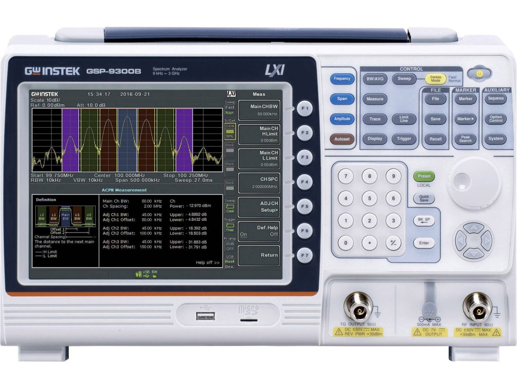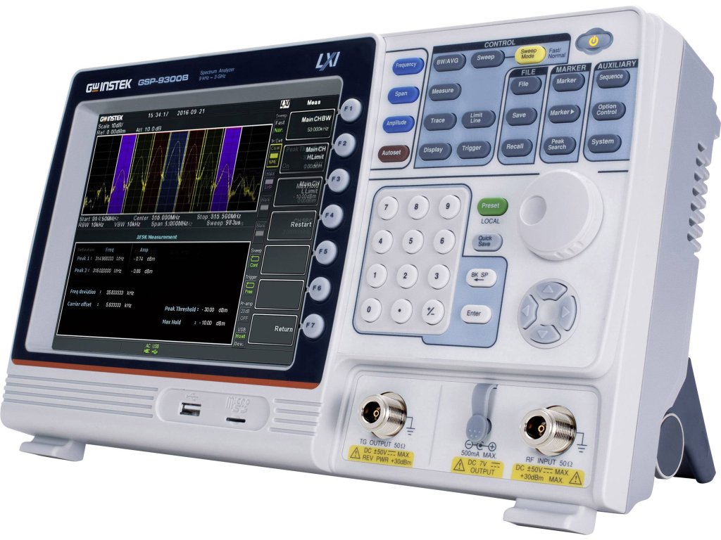 GSP-9300B je 3GHz spektrální analyzátor, který splňuje základní požadavky pro HF měření. Nabízí frekvenční stabilitu 0,025 ppm, intenzitu stárnutí 1 ppm/rok, zabudovaný předzesilovač, základní šum -149 dBm/Hz a více než 20 měřicích aplikací, včetně AM/FM analýzy modulačního signálu, analýzy signálů kanálů a testu CATV parametru. Během kolokace pomocí TG-Option může GSP-9300B provádět testy frekvenčního rozsahu nebo testy linearity výkonu na součástkách.Specifikace: