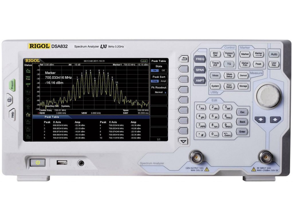 Spektrální analyzátor DSA832-TG je vhodný jak pro volnočasové aktivity, tak pro profesionální použití. Díky rozmanitosti softwarových nástrojů a možných doplňků je ideální pro EMI (EMC) testování tzv. „Pre-Compliance“ v rámci přípravy na přijetí specifikací EMV.Specifikace: