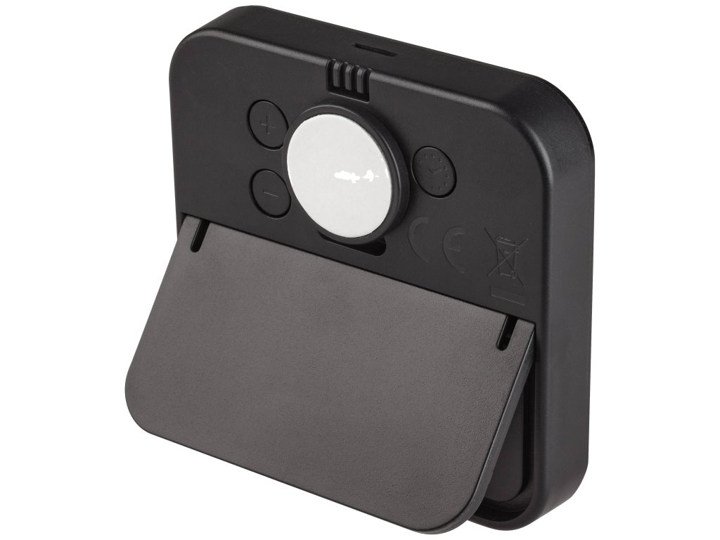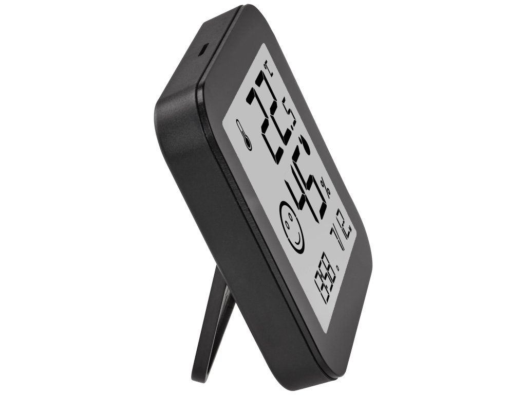 Chcete-li v místnostech zajistit útulné klima, je teploměr a vlhkoměr tím správným nástrojem. BLACK & WHITE vám poskytne potřebný přehled s E-Ink displejem, který je velmi vhodný pro oči. Všechny hodnoty jsou kontrastní a neoslňující, jak je zobrazeno na papíru. Vyberte si svůj displej černým na bílém nebo invertujícím bílým písmem na černém pozadí. Teplotu a vlhkost vzduchu můžete sledovat a regulovat cíleným vytápěním a větráním. Objeví-li se čilý smajlík, jsou hodnoty optimální. Stisknutím tlačítka se ukládají nejvyšší a nejnižší hodnoty.BLACK & WHITE má také hodiny s datem nebo datem v týdnu.Praktické malé zařízení lze mnoha způsoby umístit do pozice:Teploměr a vlhkoměr můžete díky výklopnému stojanu umístit do různých zorných úhlů.Použijte dodaný nástěnný držák s lepicí podložkou nebo zavěste přístroj pomocí hřebíku přímo na stěnu.DÍKY magnetům na zadní straně drží BLACK & WHITE i na kovových površích.Tento text byl přeložen strojově.