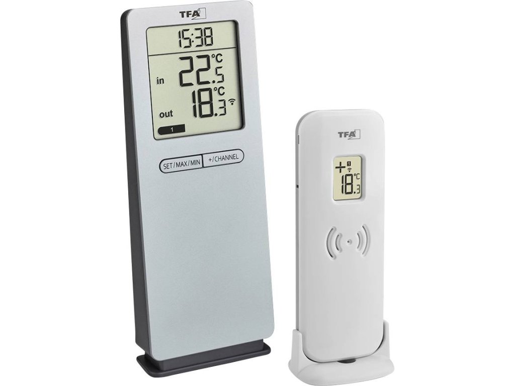 Tenký nástroj přijímá venkovní teplotu přímo na místě prostřednictvím vlastního bezdrátového vysílače, pokojová teplota měří interní senzor. Stisknutím tlačítka se ukládají nejvyšší a nejnižší hodnoty. Volitelně lze hodnoty nastavit automaticky každý den.Kontrola pokojové teploty je důležitým faktorem pro příjemné a zdravé klima a pomáhá šetřit energii. Snížení teploty zajišťuje až o 6 % nižší náklady na topení.S venkovní teplotou získáte spolehlivě důležité informace pro dům, zahradu, volný čas i práci. Navíc je přístroj vybaven ukazatelem času.Lze připojit další dva vysílače pro kontrolu teploty, např. v dětském pokoji, ložnici, sklepě nebo garáži.Tento text byl přeložen strojově.