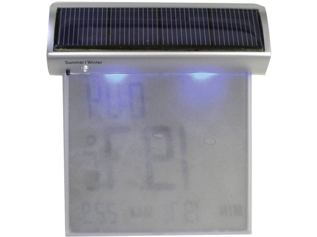 Informace o počasí snadno zjistíte z interiéru, aniž byste byli nuceni otevřít okno. Akumulátor pro automatické osvětlení za tmy se nabíjí solární energií. Teploměr je napájen baterií.Specifikace: