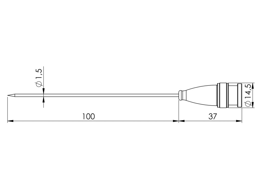 Toto vpichovací čidlo zastřešuje velký rozsah měření a je tak ideální pro nejrůznější použití ve výzkumu a průmyslu až po kuchyni a domácnost. Díky 1,5 mm tenké trubici je ideální pro měření teploty uvnitř masa. Čidlo se připojuje přímo k měřicímu přístroji bez použití kabelu prostřednictvím BNC konektoru.Vlastnosti: