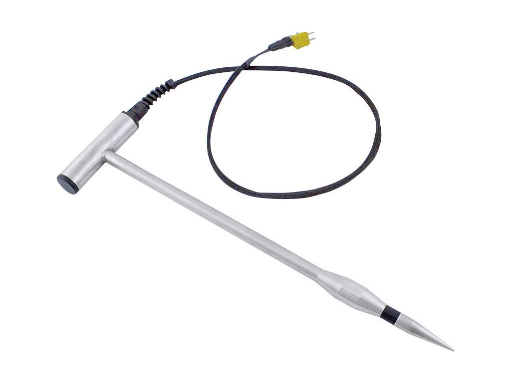 Sonda pro měření vlhkosti v hloubce až 40 cmVč. připojovacího kabelu 1 m. Zapichovací čidlo je velmi vhodné pro měření v dřevité vlně, dřevité moučce, pilinách, slámě, senu, obilí atd.