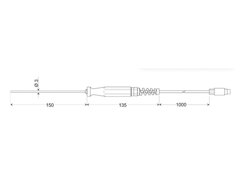 Trubka čidla z V4A · Délka čidla 150 mm, Ø 3 mm.