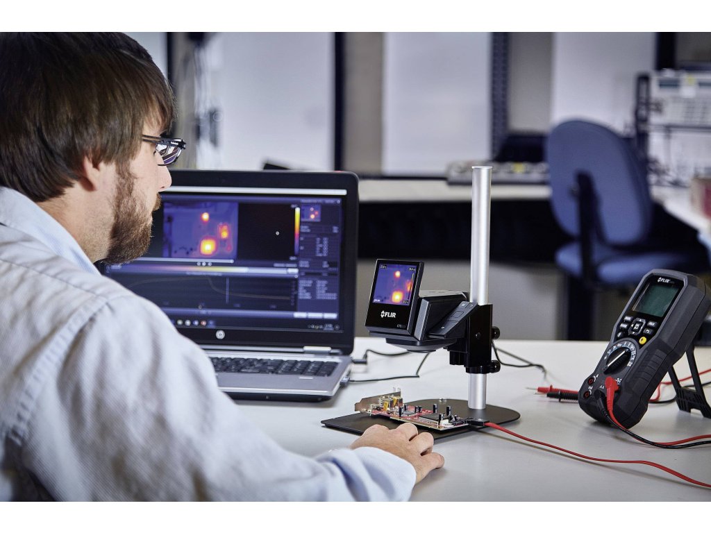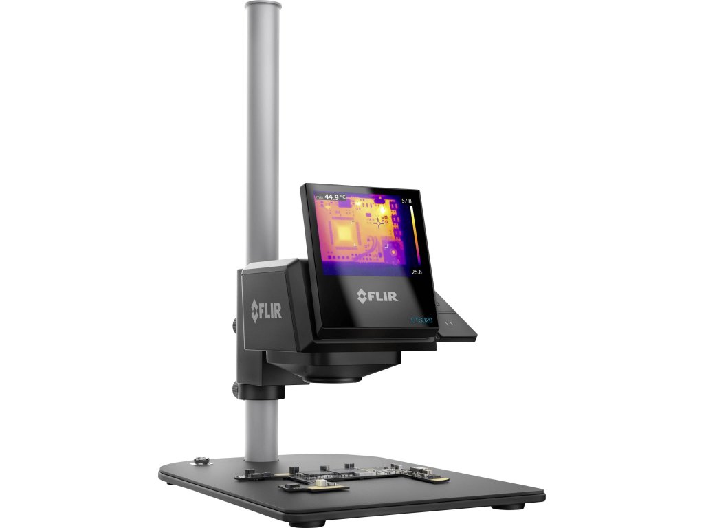Termokamera FLIR ETS320 představuje řešení pro rychlou kontrolu teploty na deskách plošných spojů a elektrických zařízeních v laboratoři. Ušetříte čas a zamezíte měření pouhých odhadů, přičemž s citlivým a přesným detektorem o rozlišení 320 x 240 pixelů můžete ihned měřit teploty s pomocí více než 76 000 měřicích bodů. Model ETS 320 byl navržen speciálně pro laboratorní testování elektroniky. Je napájen akumulátorem a umožňuje volnou manipulaci. Kameru lze připojit přes USB k počítači pro okamžitou analýzu a výměnu dat.Termokamera ETS320 disponuje pokročilou termovizí FLIR a snadno smontovatelným stolním stojanem pro volné měření desek plošných spojů a dalších malých elektronických součástek. Kamera je natolik citlivá, že rozpozná teplotní rozdíl s přesností ± 3 %, díky čemuž mohou produktoví designéři a zkušební technici rychle rozpoznat závadná místa. Infračervený detektor s rozlišením 320 x 240 pixelů poskytuje více než 76 000 měřicích teplotních bodů a brání naměření nepřesných hodnot kvůli nesprávně zvolenému měřicímu přístroji. Model ETS320 napájený akumulátorem je určen speciálně pro laboratorní testování elektroniky. Pro okamžitou analýzu a uvolnění dat jej lze připojit k PC přes USB port.