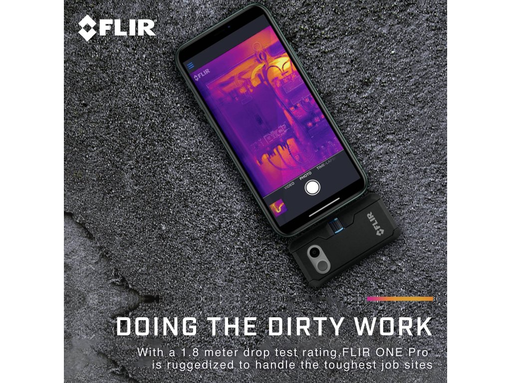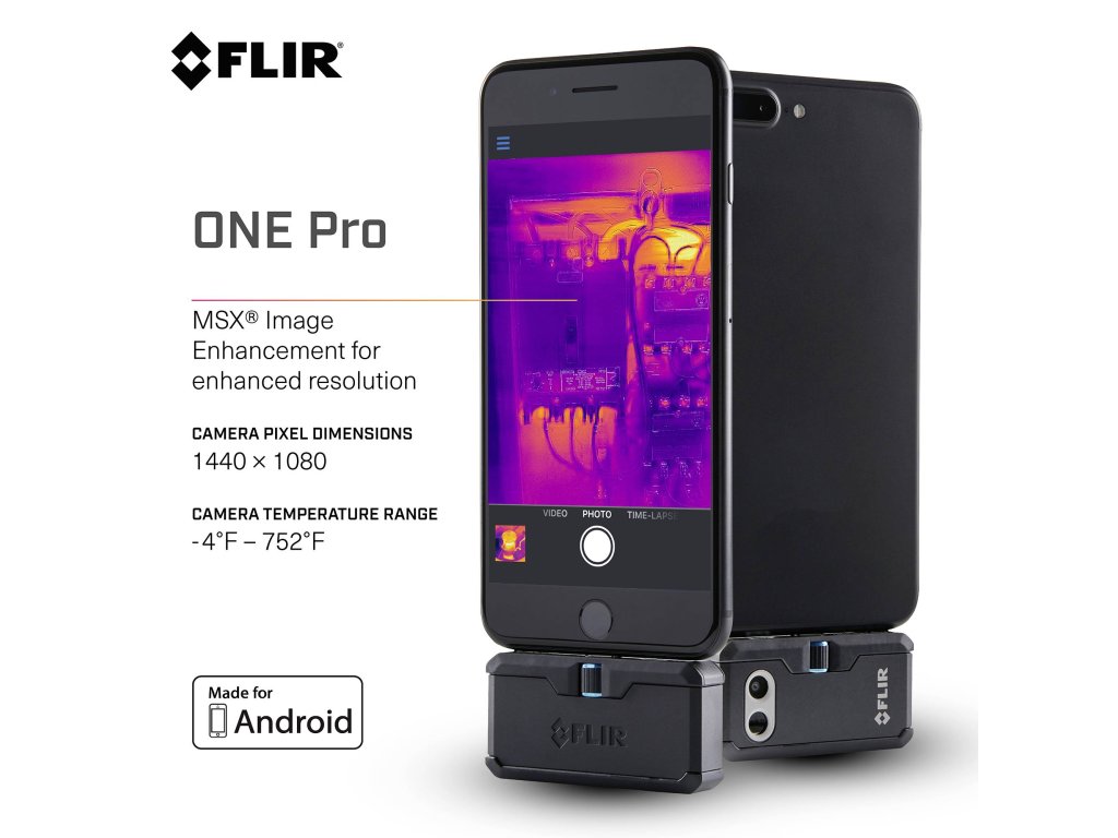 Zbrusu nová termokamera FLIR ONE Pro (s konektorem USB-C) je nutným vybavením pro všechny inspektory či podnikatele ve stavebnictví. Díky kombinaci snímků ve formátu MSX s vysokým rozlišením a podrobných měřicích a vyhodnocovacích nástrojů představuje FLIR ONE Pro nezbytného pomocníka.S novou termokamerou FLIR ONE Pro (s konektorem USB-C) objevíte dosud skryté problémy rychleji než kdy dříve. Stačí připojit FLIR ONE Pro ke smartphonu či tabletu s operačním systémem Android a daný přístroj se ihned promění v termokameru. Díky nejlepšímu teplotnímu rozlišení a revoluční technologií zpracování obrazu MSX a VividIR uvidíte s termokamerou FLIR ONE více detailů a budete si moci ověřit odstranění problémů. Bez ohledu na to, zda chcete pozorovat domy, auta či elektrické konzoly, případně odstranit závady na topení, ventilaci či klimatizaci nebo zjistit možná poškození způsobená vodou, je nová termokamera FLIR ONE je tím pravým přístrojem pro každého.