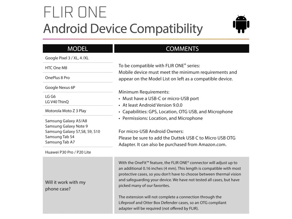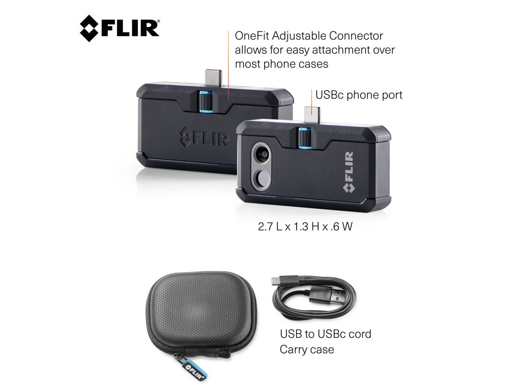 Termokamera FLIR ONE Pro určená pro zařízení se systémem Android a konektorem USB-C·Ochranné pouzdro·Nabíjecí kabel s koncovkami USB-C a USB-A