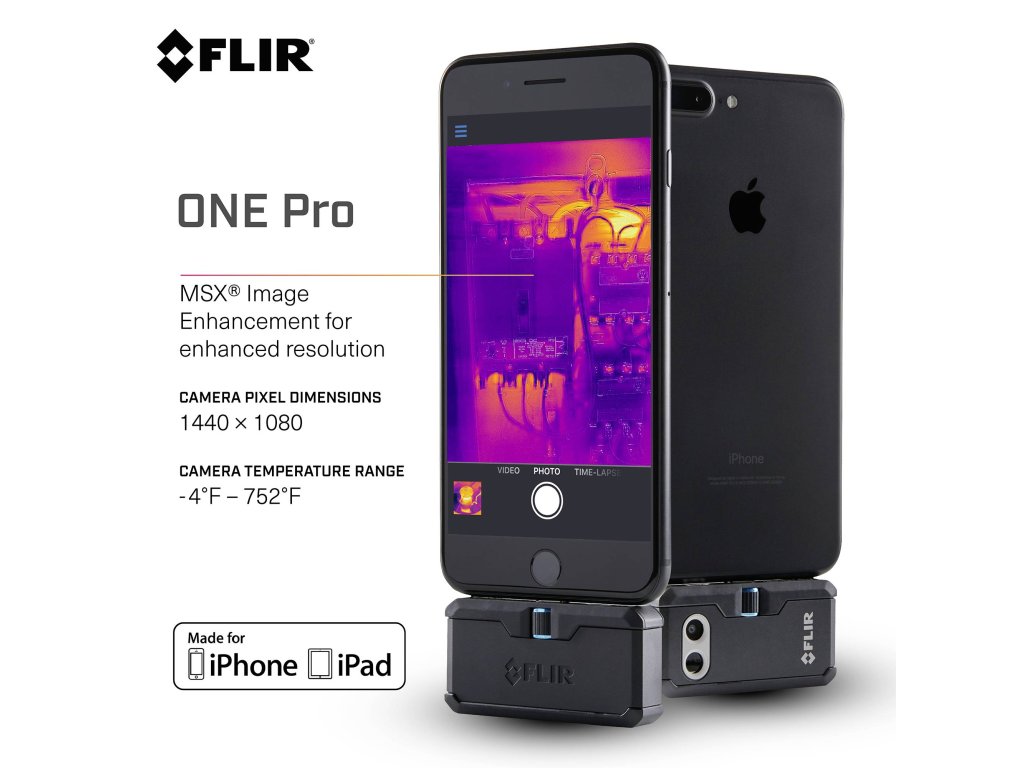 Zbrusu nová termokamera FLIR ONE Pro je nutným vybavením pro všechny inspektory či podnikatele ve stavebnictví. Díky kombinaci snímků ve formátu MSX s vysokým rozlišením a podrobných měřicích a vyhodnocovacích nástrojů představuje FLIR ONE Pro nezbytného pomocníka.S novou termokamerou FLIR ONE objevíte dosud skryté problémy rychleji než kdy dříve. Stačí připojit FLIR ONE Pro k tabletu či zařízení iPhone s operačním systémem iOS a daný přístroj se ihned promění v termokameru. Díky nejlepšímu teplotnímu rozlišení a revoluční technologií zpracování obrazu MSX a VividIR uvidíte s termokamerou FLIR ONE více detailů a budete si moci ověřit odstranění problémů. Bez ohledu na to, zda chcete pozorovat domy, auta či elektrické konzoly, případně odstranit závady na topení, ventilaci či klimatizaci nebo zjistit možná poškození způsobená vodou, je nová termokamera FLIR ONE je tím pravým přístrojem pro každého.