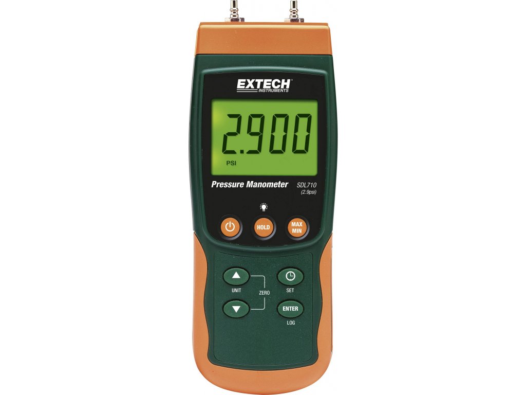 Extech SDL710 měřič vysokého/nízkého tlaku v systémech, měří tlak, -200 - +200 mbar